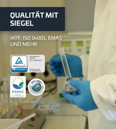 Nous sommes certifiés depuis 2004 selon la norme nettement plus stricte du système de gestion de la qualité de l’industrie automobile et nous développons continuellement nos processus et nos compétences. Avec ISO 14001, EMAS et une gestion intégrée de la santé et de la sécurité au travail selon ISO 45001, nous assumons notre responsabilité vis-à-vis de l’environnement et de nos collaborateurs. Une gestion de l’énergie bien vécue améliore l’efficacité énergétique et renforce notre performance environnementale.